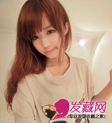 感觉好甜美的小女生发型,水润的双眼配搭齐刘海,灵气有神,侧发肩部的微卷长发,以深红色挑染, 打造每个角度都很美的小清新发型。