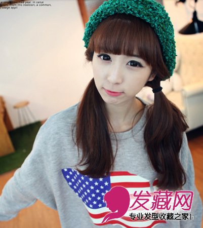 甜美的笑容可爱迷人,随意扎的双马尾,天真可爱,又显俏皮活泼,加薄碎齐刘海搭配小萝莉味道十足。