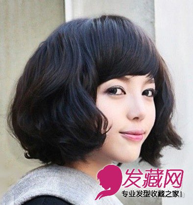 这款发型非常适合发量较多的MM们,厚厚的斜刘海给人感觉非常甜美可爱,齐颈的中短发烫上简单随意的大卷,使得头发蓬松有型,不仅使脸型看起来更加小巧,还更添一丝知性与柔美。