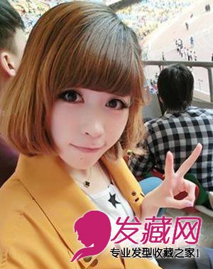 搭配时下流行的浅棕色发色,极具时尚潮流的气息,齐刘海+内卷散发着十足的魅力气质。内扣贴脸的发丝为美眉修饰了脸部线条,打造出精致的V脸。