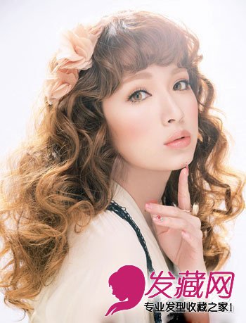 甜美可爱的蓬松卷发,将齐眉的刘海也打造成了一样的卷曲感觉,为了增加发型的空气感,将发梢整理出稍显凌乱的层次感是关键。