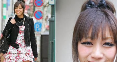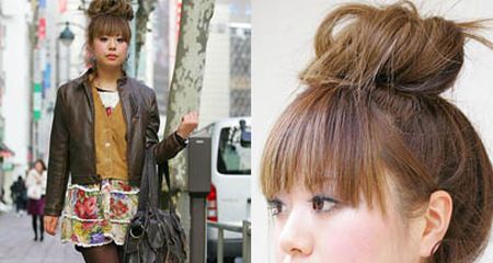 小编点评:日本街拍 怎么少得了非主流丸子头呢!别致的发髻配搭上水玉图案的蝴蝶结,低沉的颜色不会给人装嫩的嫌疑,高高扎起营造可爱女孩印象吧。