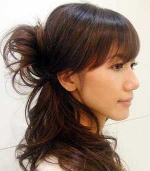 过小的波浪,会给人一种老气的感觉,应届mm们追求的可是时尚的成熟。这款发型采用的恰恰就是大波浪卷发 ,再加上中分的长刘海 不经意的披散在脸颊,成熟感立刻倍增。向后梳起的头发,可以编成麻花辫,也可以用小夹子固定,用来减少大波浪带来的柔媚感。
