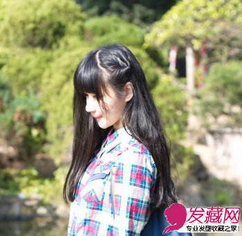 长发披肩,尽显秀气纯净,耳上方扎着别致小辫固定了散漫的发丝,更是俏丽迷人,自然的黑发在阳光的沐浴下光泽亮丽,让人过目不忘。