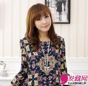 碎薄的刘海微微内扣,加上发尾烫成的螺旋卷效果,尽显小女人的甜美优雅,棕黄色的染发使精致的小脸看起来更为白皙透亮。