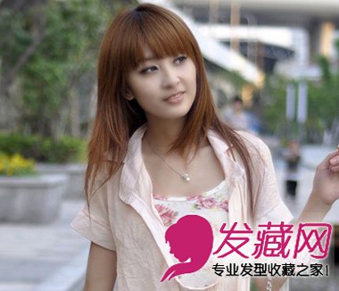 齐肩的中长碎直发,直发非常简单,棕色的染发突显女生恬静,再配上齐刘海可爱气息十足。