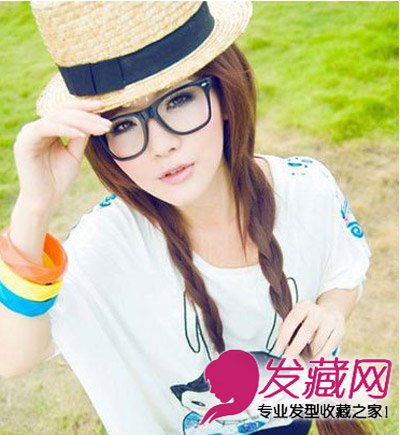 也非常适合戴眼镜的MM,将秀发分成两部分,分别编织成两条松散的麻花辫,给眼镜留了足够的位置呢!看起来十分地休闲惬意呀。出游记得搭配个遮阳帽吧!