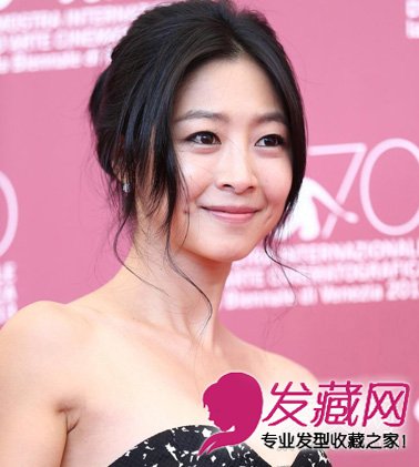 搭在脸颊上,修饰圆脸,突出淡淡的女人味。
