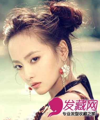 带点凌乱美的盘发造型似乎看上起也不错哦,侧边挽起发髻,刘海夹起来,露出精致的轮廓,配上耳饰点缀,气场马上增加。