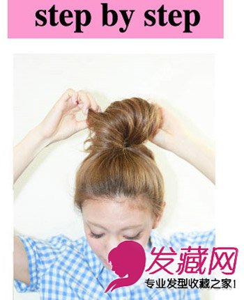 step 3:扎发的过程中将头发对折,成蓬松包包。