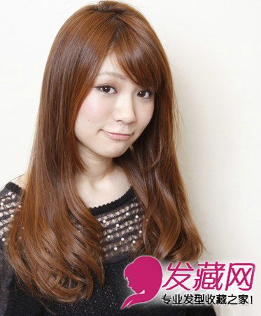 三七分柔软的秀发,很好的修饰脸型,长发向内翻卷增添甜美度,巧克力色的