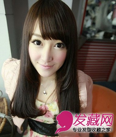 甜美可爱的韩系梨花头发型,层次感分明的烫发修剪,内扣发丝瘦脸,斜刘海半着额头修颜,很适合圆脸和方脸MM修饰出精致的脸型。