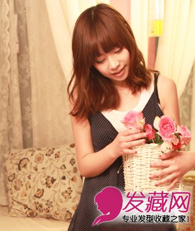 韩系齐肩中长发烫发,少女系的烫发发型,清新自然的微卷烫设计搭配棕色染发,甜美的韩流范儿