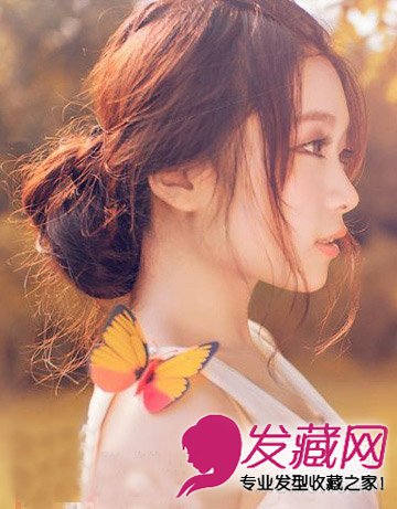 略显松散的扎发造型看上去更显出几分淡定女人味,松松的丸子头慵懒美丽,几缕长