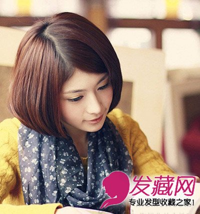 ,三七分刘海将女生精致的五官完美的展现出来,红棕色染发不仅衬托了女生白皙的肌肤,还将女生甜美的气质完全流露出来。