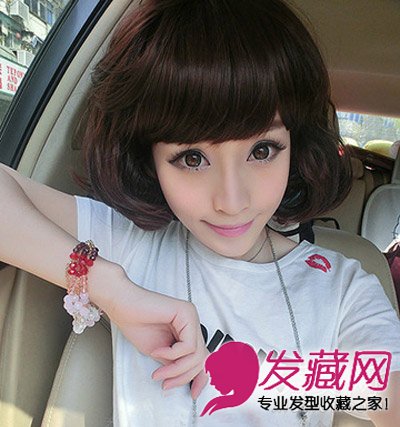 这款甜美范十足的短发发型,微卷的齐刘海加上短