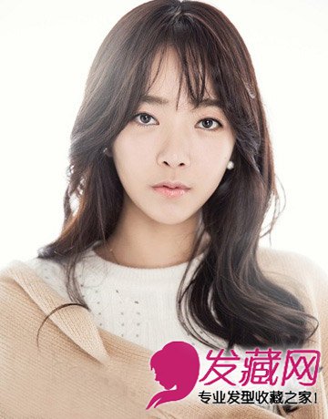 韩式的甜美卷发型,精致的大卷打出层次效果,更显轻盈飘逸,薄碎的齐