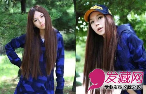 小编点评:将刘海中分,更有女神气质,长及腰的发丝自然垂顺,戴上一顶鸭舌帽更加活力十足。