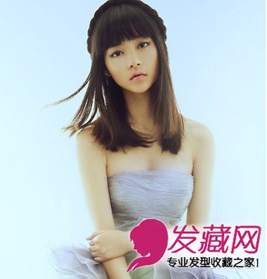 发型,垂顺的直发发丝自然垂落,垂坠感十足简单大方,搭配了环形编发的造型更显清新甜美气质。