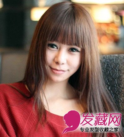 齐平的刘海,除了会人一种可爱甜美感还会给人一种温婉气息,搭上层次感直发,更具魅力。这样的齐刘海