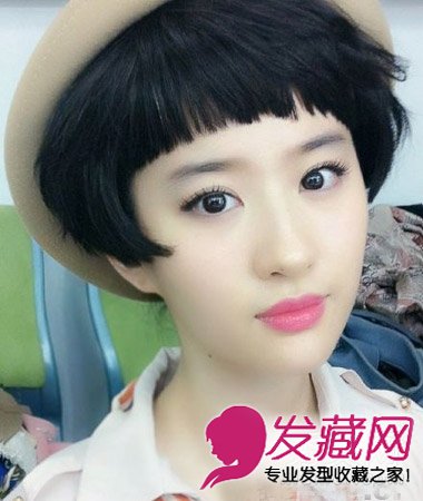 ,带点蘑菇头感觉的圆润弧度,超短齐刘海修颜清爽,塌鼻子MM打理这款短发一样很显气质。