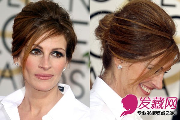 想要头发完美之至,表现出优雅而有魅力的姿态,那建议你将头发梳拢后,在头后部将头发完全打造一个没有任何马尾发髻痕迹的盘发。再将