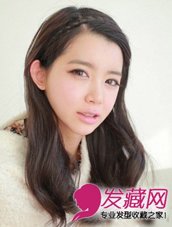 复古的编发,中分露额的发型显得十分清新,卷发的卷度不是很大,看起来却很是简单唯美。