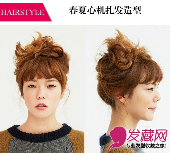 发型点评:棕色长发全部盘起来,露出白皙的脖颈,清爽自然,别致的