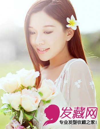 发型凸显纯净如水的少女情愫,侧分的发丝搭在脸颊,笑颜如花,人比花美,简单的小清新发型,棕色的