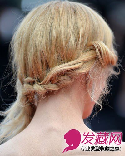 上采用了今季流行的编发,松散的将头发编成麻花辫然后收拢到一侧,不用再过分的修饰碎发,这样看起来更加的自然慵懒,使妮可看上去彷如希腊女神般的美好。
