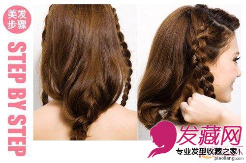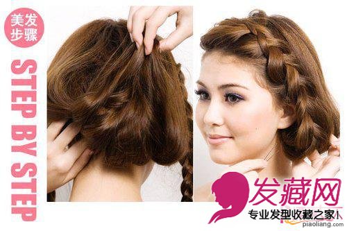 :把后方头发下半部编成超松辫子,发尾逆刮固定。