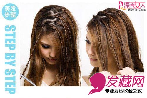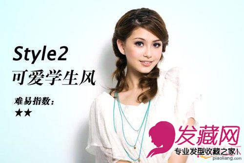 Style2:可爱学生风 可爱学生素净的辫子头,把握「拉松」和增加细辫子的重点,随即摇身一变为时尚(微博)可爱的辫子编发。