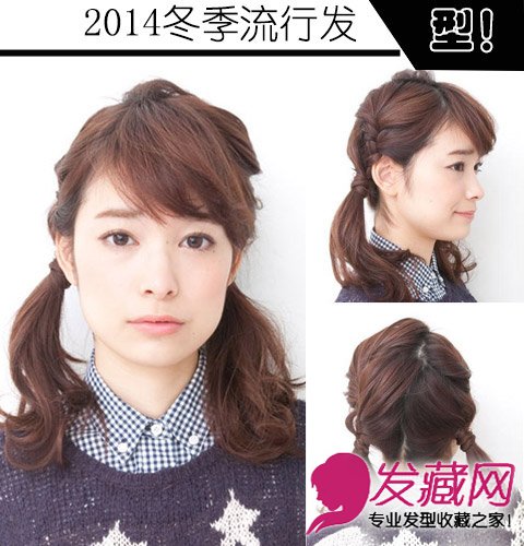 衬托皮肤白皙红嫩,随意自然的编发显得女生甜美可人,及肩的双马尾烘托脸部线条,时尚中透露出甜美可爱,而且还很防寒呢。