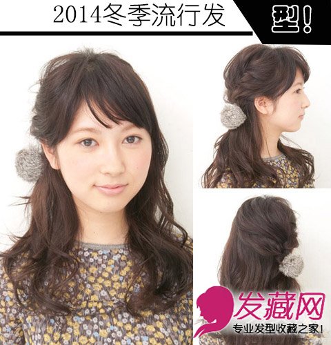 冬天散下的头发是防寒利器,侧编的编发增加甜美感,发尾用一个毛绒绒的发圈扎紧,时尚又充满朝气吧!