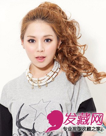 设计搭配长卷发扎发造型,显得十分活力,年轻,很有灵动感,再加上个性的染发颜色,很时尚好看。