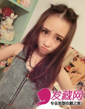 型,将简单的中分打造出很别致的感觉。简单的将刘海别出猫耳发型的样子,活泼可爱。尽显小女生的一面。
