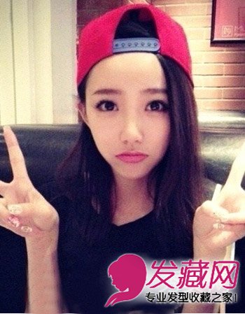 与棒球帽的造型看起来特别显时尚感。可是却也不失小清新发型的气质。