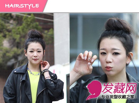 发型3花苞头乌黑的秀发利用高高的马尾,让脸型全露出来反而不会显得脸型圆润,高高的花苞甜美可爱,又有很强的修颜效果,可以成为首选发型呢。