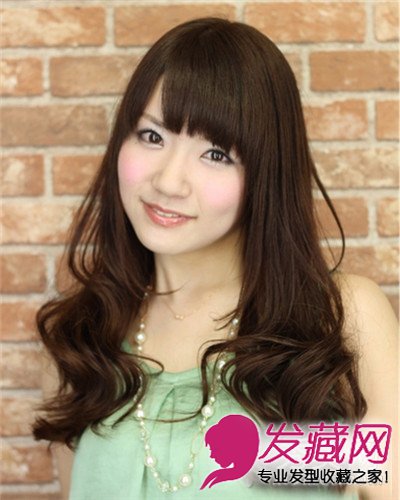 丰厚的头发,上方垂顺处理,下方大波浪卷度,发型很有特色,刘海侧梳,整体感觉灵动优雅,可爱而又美丽。