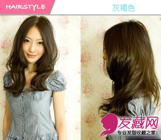 过肩的头发打造出螺旋卷的卷发效果,形成的两束头发非常有型,加上灰褐色的配合,使发丝散发亮眼金属光泽,淑女显气质。