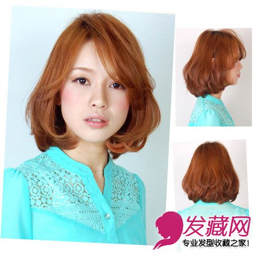 橙棕色染发让皮肤显白嫩,内扣波波头设计显时尚干练,特别适合OL。