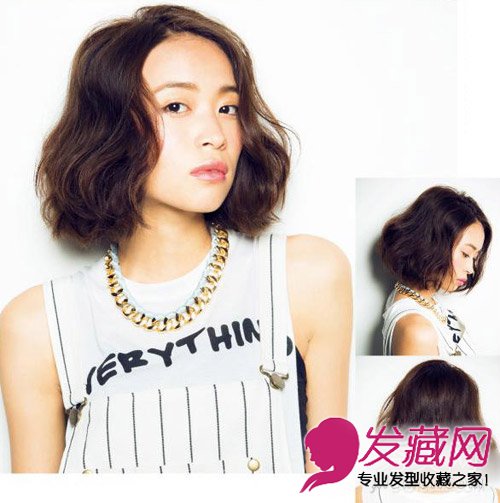 发型点评:中分刘海在脸颊上烫出华丽的卷发线条,凸显出脸部轮廓感,但是额头过高的MM不建议尝试这款发型哦。