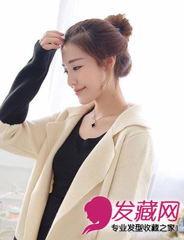 上班族发型主要是简单干练为主,时尚的棕色长发盘起来,干净清爽的丸子头造型立马显得整个人精神气也提高了。