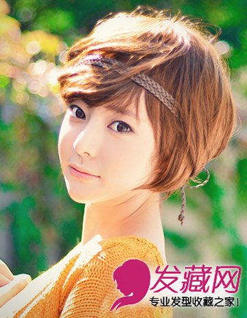 造型,比起上一款显得灵动些许,短发打造出时尚的层次感更显别具一格的气质感,点缀 上发带平添了一线甜美感。