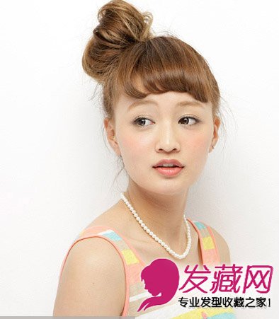 发型点评:高耸的丸子头饱满立体,歪歪扭扭的设计更添了几分活力感。内扣刘海修饰脸型,俏皮有活力。