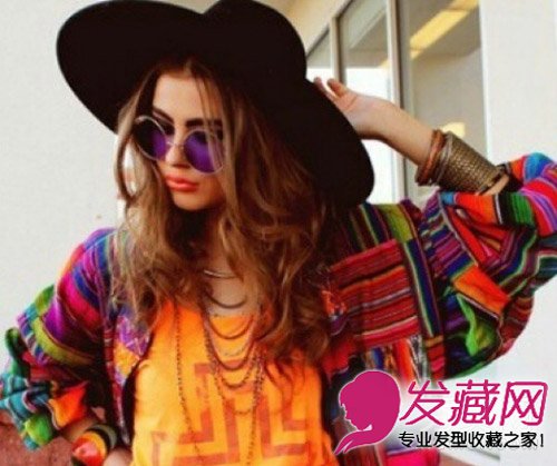 休闲随性+自然卷发:大宽帽搭配随性发型,露出额头的戴法很契合休闲穿搭。