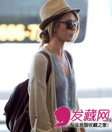 轻松随性+低发髻:窄边爵士帽搭配低位置绑上的发髻展现良好平衡。两侧随性垂落的发束休闲自在。