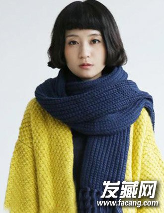 ,简约甜美,齐刘海的减龄感也为整款造型增色不少,搭配毛衣外套,温暖的围巾,文艺书卷气质尽显。