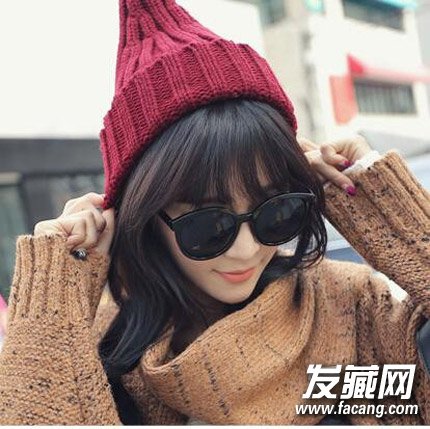 毛线帽子在冬天总是很有时尚,喜庆的红色更是好心情的必备品,搭配披肩发很是自然天灭,细碎的