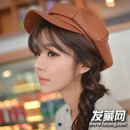 戴帽子怎能离得开编发呢?对长发的女生来说,这样将变成侧编发可是超有女人味呢,轻薄空气刘海配上麻花辫,侧颜美的没话说了。